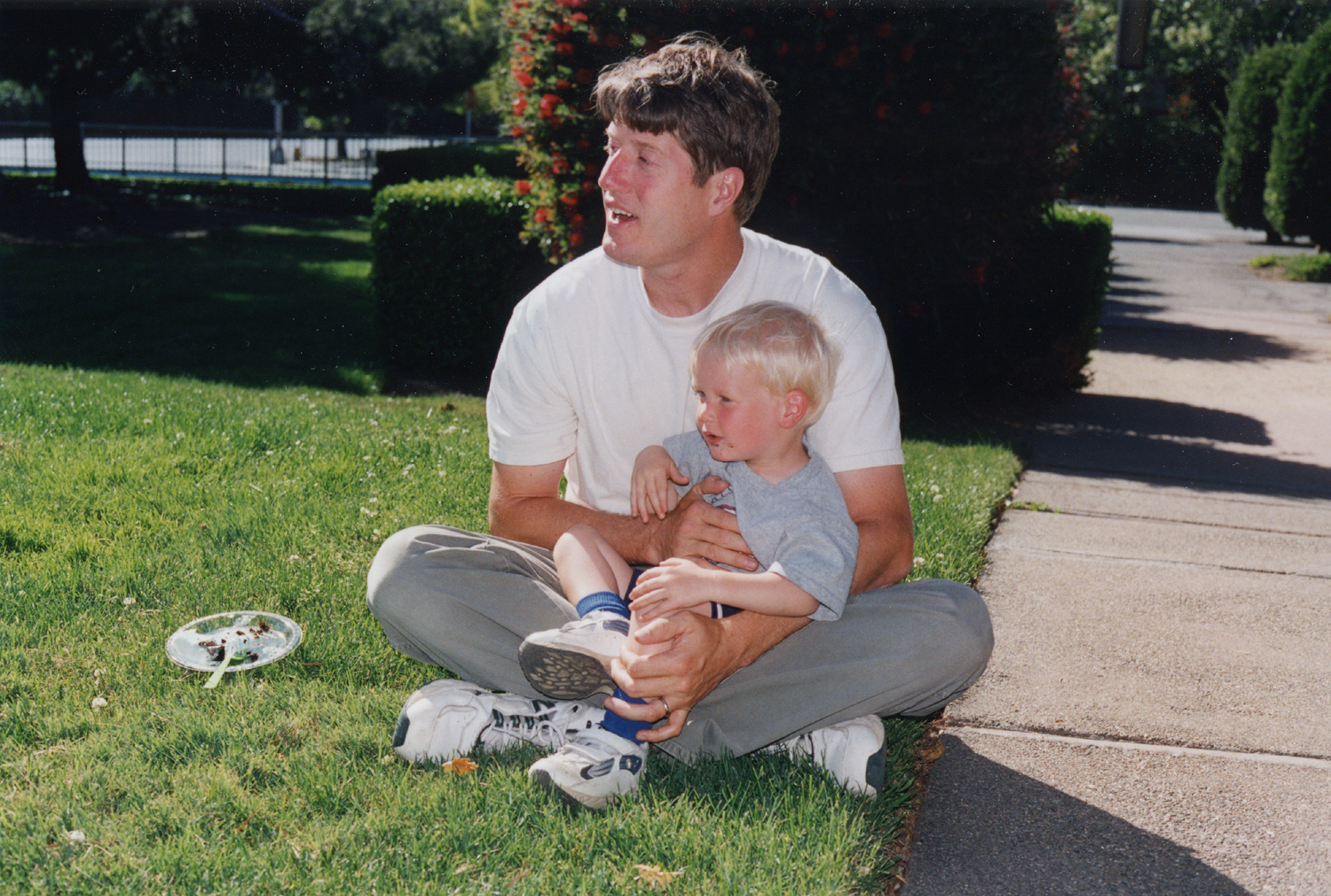 Thumbnails Full Resolution Next Brent and Scotty eating chocolate cake at Cristopher van Gelder's fifth birthday party at Bowden Park. We rode the train to get here.