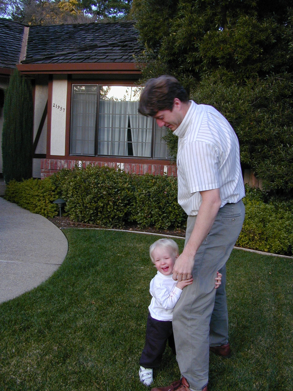 Scott doesn't like to be thrown up in the air, but he puts up with it anyway to make his dad happy.