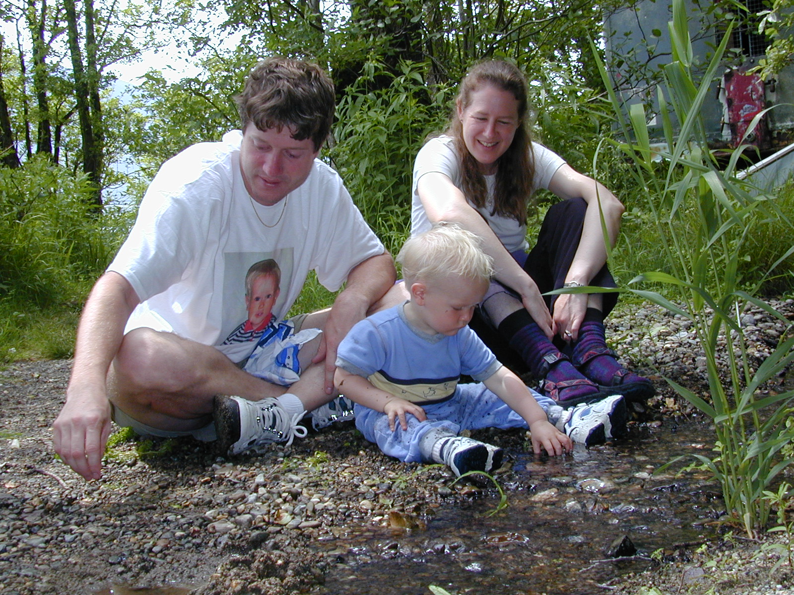 Following Scott's lead, Brent and eventually Chris got in on the water fun.  We built a dam with canal and working lock.  Everyone needed a bath by the time this adventure had run its course.  Brent is wearing his cool Dad's day gift tee shirt from Chris and Suzy.