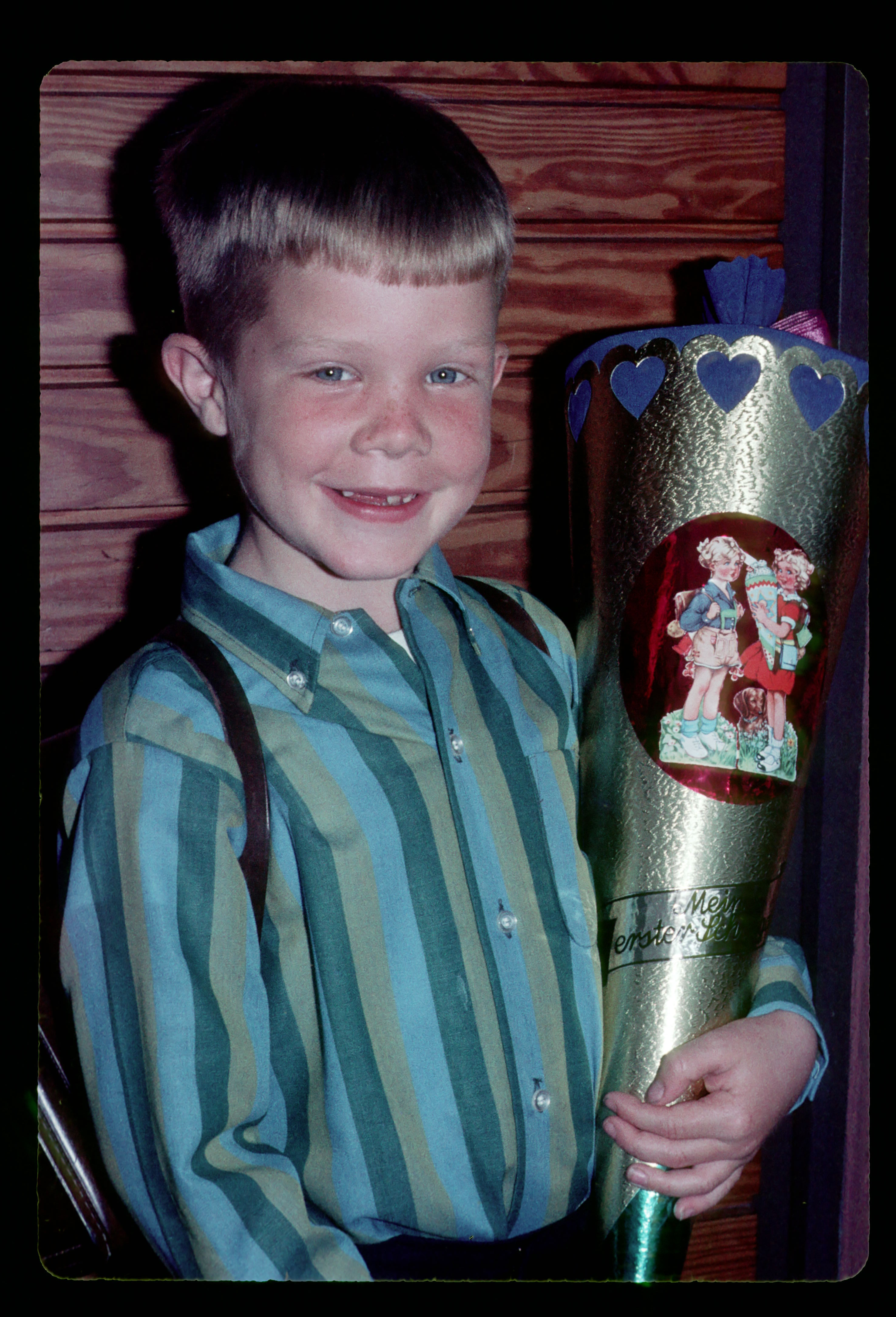 Previous Thumbnails Full Resolution Next 9/3/68 David 1st day of 1st grade - Zuckertüte