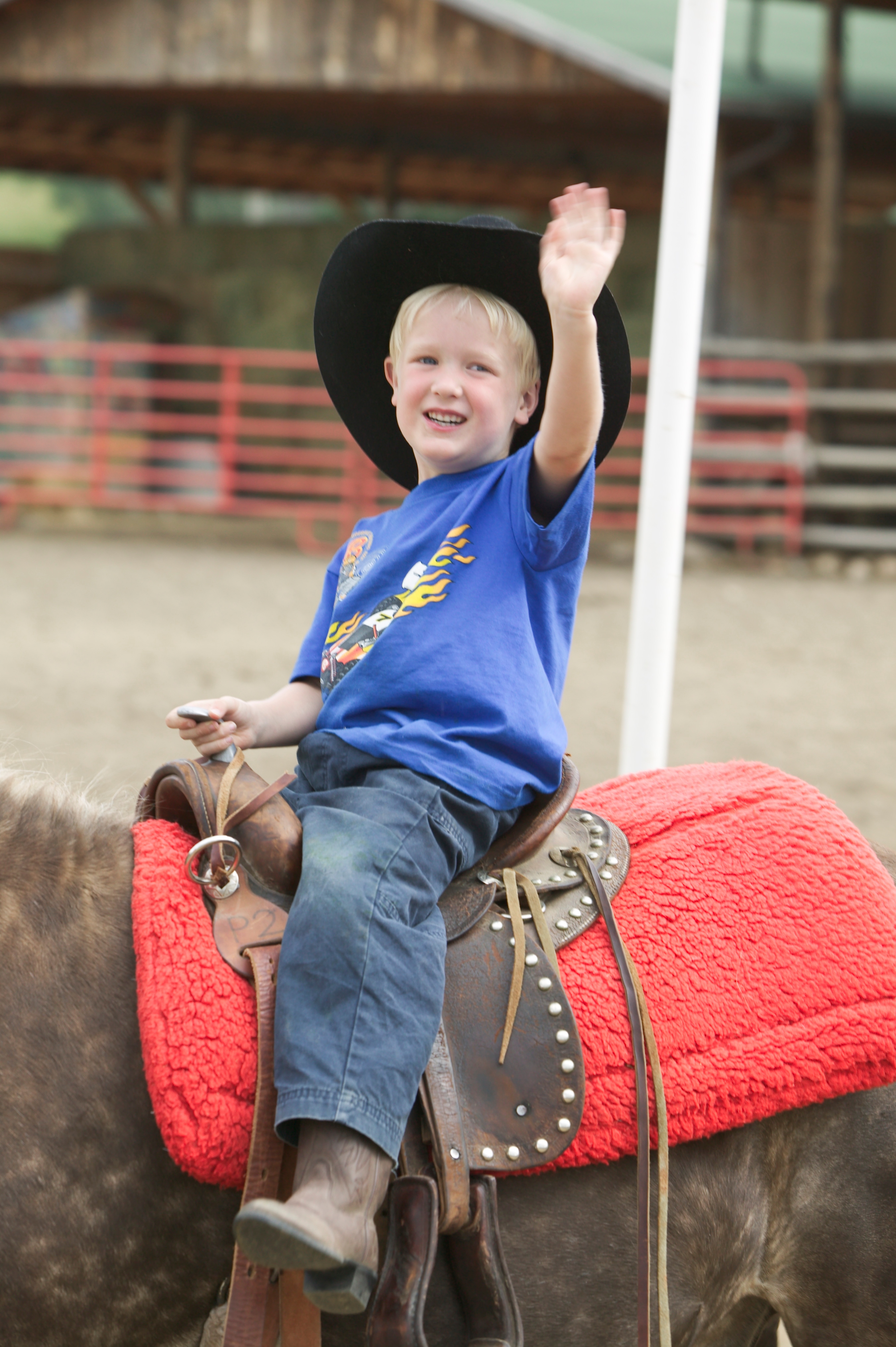 Waving to the crowd.